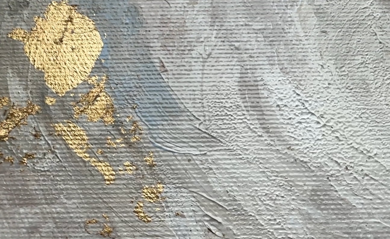 Invite a moment of stillness into your home with this serene, light-infused abstract painting. Rich textures, soft flowing movement, and hand-applied gold leaf create a gentle sense of harmony - the kind you feel in the pause between breaths, or in the warm quiet of early morning.